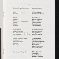 The original story of the tribal rivalries of ancient Scotland, witchcraft and ghosts was set in the Western province of Zambia in the context of African folklore. The production, played by an all-black cast, made spectacular use of dance, masks and rituals offering a new perspective to the original Shakespearean work.