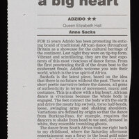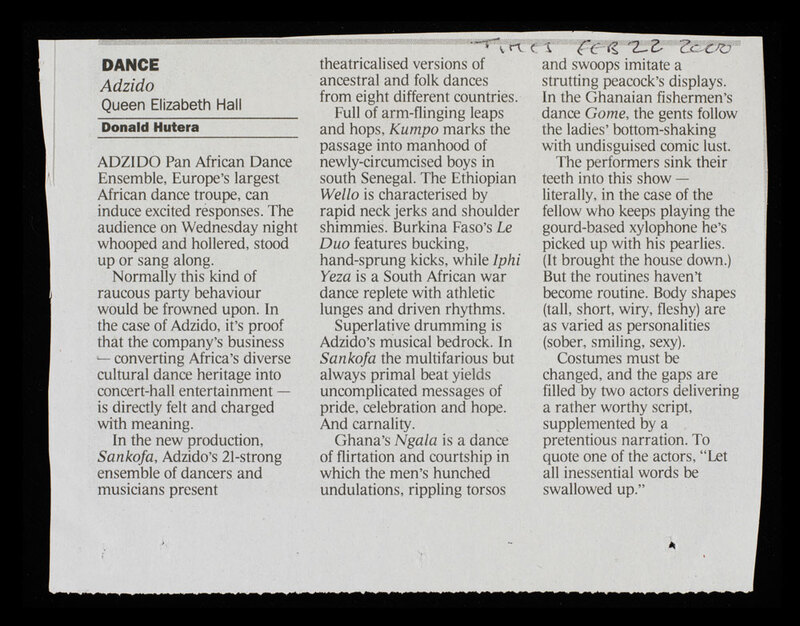The show explored various ancestral dances still performed throughout Africa. Its title refers to the Adinkra symbol of the Ashanti people of Ghana, West Africa, which means there is no going forward without looking back. As noted in the programme 'Sankofa asks that in this new century we reflect on and embrace the traditions that have enriched our lives.'