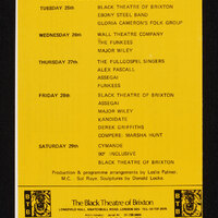 The show programme included a series of events featuring music, dance and drama to explore issues around black liberation 'from unsophisticated bondage to a sophisticated one'.