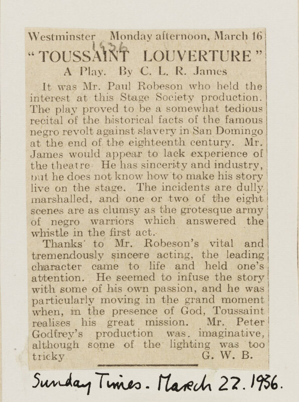 Several newspaper articles reviewing Toussaint L'Ouverture 5
