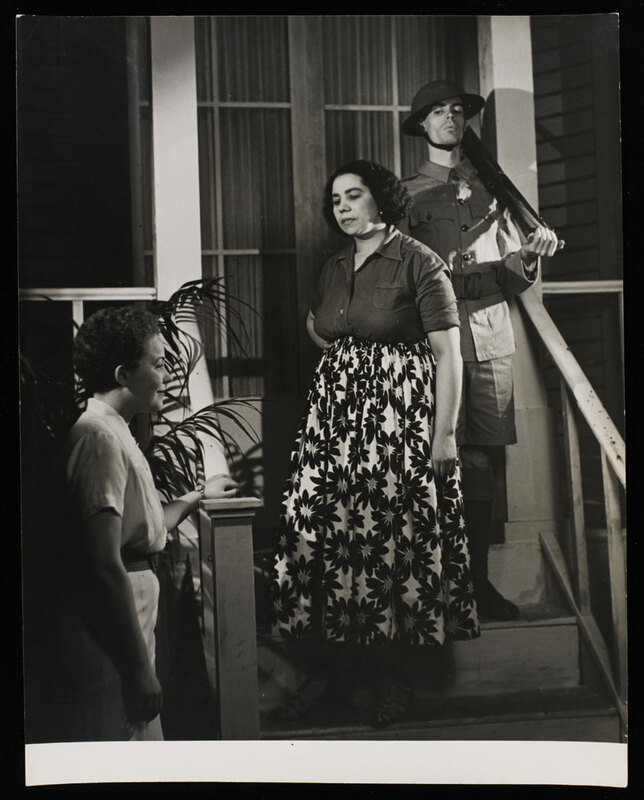 Black and white photograph of actors on stage in the Colony