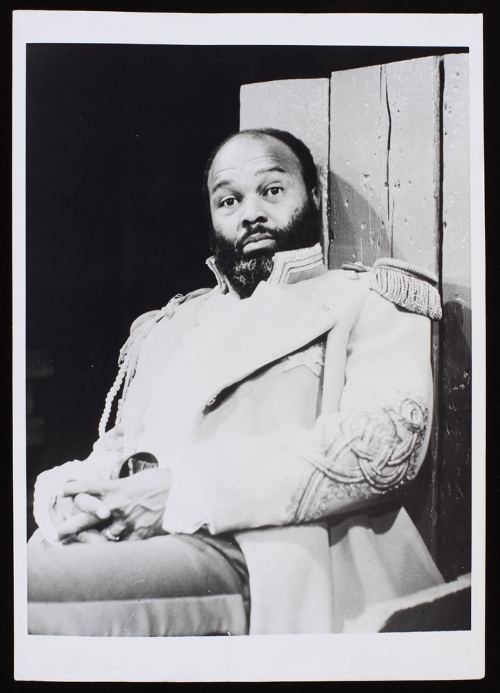 Black and white photograph of Thomas Baptiste on stage as The Emperor Jones