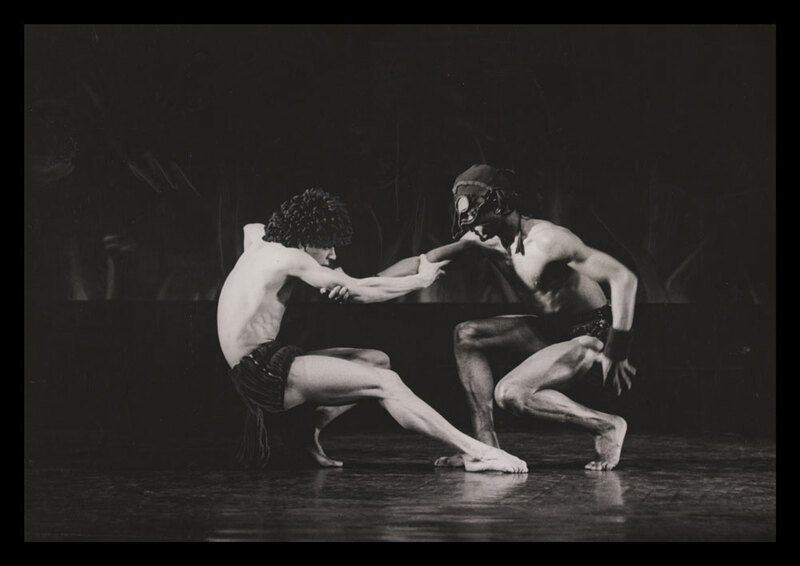 Black and white photograph of performers on stage in Rites de Passage-A Caribbean Rhapsody