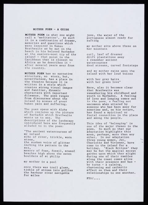 Mother Poem-A Guide flyer for Mother Poem 1