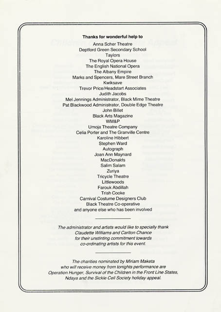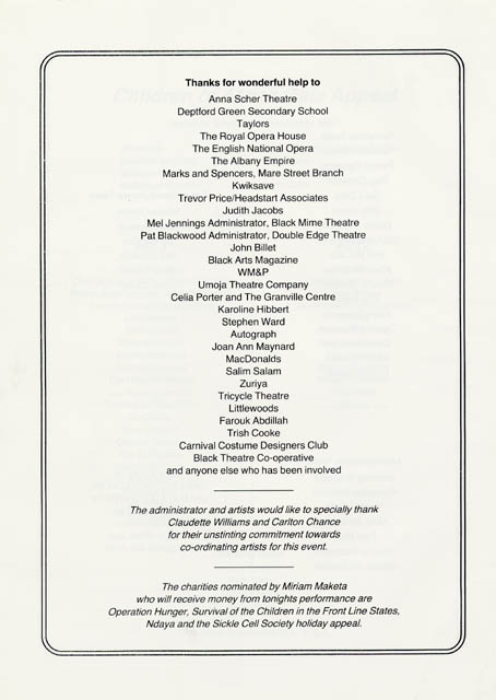 Programme of event held at the Hackney Empire (8th Dec 1991).