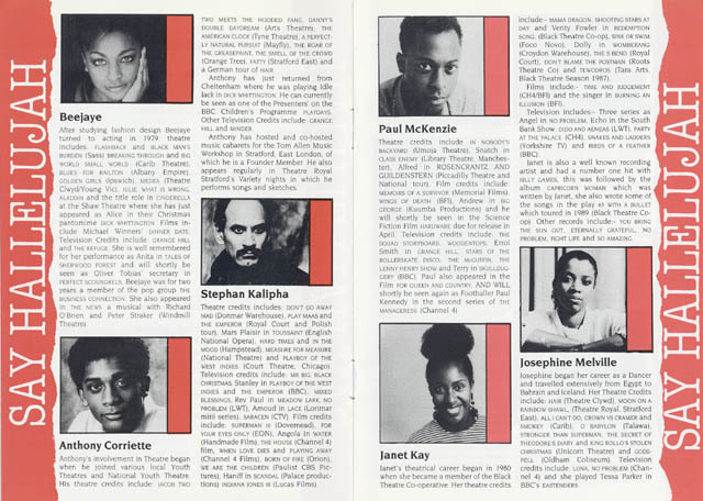 Say Hallelujah by Jimi Rand: pictures and play programme.