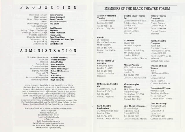 Blood, Sweat and Fears by Maria Oshodi: colour leaflets and programme along with a black and white photograph of the play.