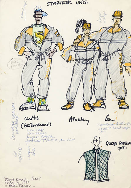 Media: Part of Blood, Sweat and Fears by Maria Oshodi: colour drawings of costumes.