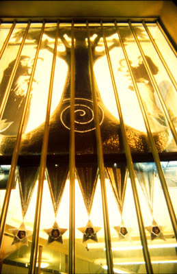 “Mothers, daughters, sons” beaten tin and large scale photographs sited in the window of Spitalfields Health Centre on Brick Lane.