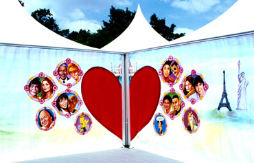 Digital photograph of the “famous faces” backdrop painted by the artist Kifait Husain.