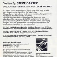 Black and white pictures show actors dressed in peasant costumes (Middle East style) in various scenes of the play. The play was part of a double bill and was directed by Renu Setna. It opened on 15/02/1989.