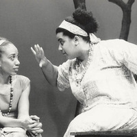 Black and white photographs (prints and contact sheets) showing various rehearsal and staged scenes of the play directed by Malcolm Frederick. Some of the pictures are credited to Paul Thompson. The play was part of the sixth Black Theatre Season. Actors include Ellen Thomas, Stephan Kalipha, Basil Otoin, Paul McKenzie.