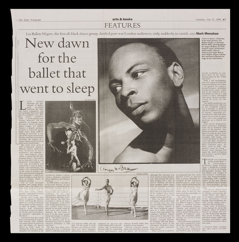 This was a tribute by black-dance awareness group, Positive Steps, to honour the groundbreaking choreographers Berto Pasuka and Richie Riley, founders of Les Ballets Nègres dance company. During the 1940s and 1950s their seminal work revitalised the dance scene with innovative interpretations of Caribbean and African art forms and their 'Africanist' aesthetic practices.