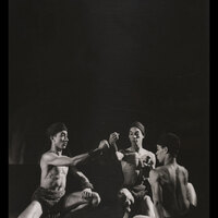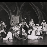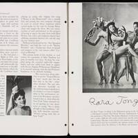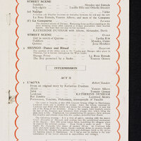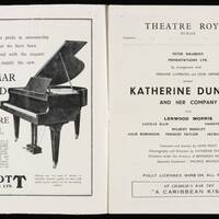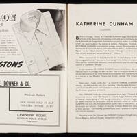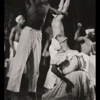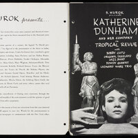 The production presented a unique review of dances from the West Indies, South America and West Africa based on Katherine Dunham's in depth anthropological research. It included L'Ag'ya, a piece devised by Dunham and set in 18th century Martinique. The piece displayed African and West Indian dances to tell a story of love and revenge culminating in the Ag'ya, the fighting dance of Martinique. Katherine Dunham was one of the groundbreaking African American choreographers who contributed to the development of African dance aesthetics internationally.
