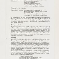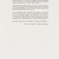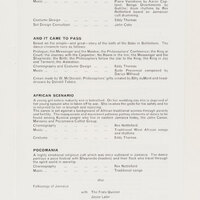 Translated as The Kind Does Not Hang, this was a Yoruba Folk Opera retelling of the story of King Sango and his two rival generals. The performance represented an example of Total Theatre, interweaving music, acting, dancing and visual arts and the use of traditional drums including the Dundun (Talking Drum), played in contrast with the metallic tone of the Bata.