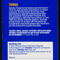 This production of Gloudon's pantomime was presented as part of the Black Theatre Forum Season. The composer Felix Cross brought a Black British sensibility to the fusion of different styles of music from Jamaica (including Mento, Jamaican soul, R & B reggae and other elements from Jamaican folk music).