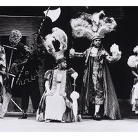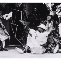 This production was based on the Jamaican practice known as Jonkunnu - when slaves originally celebrated two days of freedom at Christmas. It told the story of the famous 1841 carnival parade, which ended in a riot and led to the event being banned by the Mayor of Kingston. The writer featured puppets performing the ritual mummery to traditional music of fife, frums and conch shells, while the actors played the mummers of 1841 in costumes.