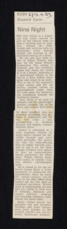 The play draws inspiration from a Jamaican burial rite, called Nine Nights, which helps troubled souls to cross over into the spirit world. In this play, the ritual refers to the cathartic experience of Hamon Williams, a retired immigrant from the Caribbean.