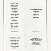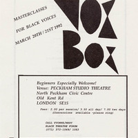 Black Theatre: the next stage by Clive Davis (photocopy of article) and other references in invitation list folder. Masterclasses flyer (1992); programme presenting artists with portrait shots, giving a summary of the plays; brochure on the Children of Africa charity event.
