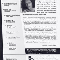 Independent Theatre Council 1996 leaflet; Inner Arts: Performers' Inner Voice Development workshop (leaflet); letter from the Art and Entertainment training council on information resources; Caroline Woodruff promoting her workshop on character building to the organisation (1995). Frontseat: issues No 6.