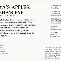 A short video film exploring inter-generational perceptions of Britain and India through the stories told by two women. Commissioner/Funder: Arts Council's Black Arts Video Project. Director: Keith Khan; collaborators Ali Zaidi, Sonali Fernando, Gavin O'Shea.