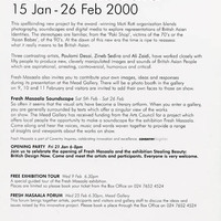Multi-media installation at Warwick University Arts Centre, exploring issues of identity. Commissioner/Funder: Arts Council of England. Artistic Director: Ali Zaidi; artists: Poulomi Desai, Zineb Sedira; producers: Karla Barnacle-Best, Janet Waugh.