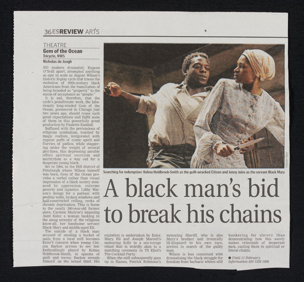 A black man's bid to break his chains': an article from Evening Standard about Gem of the Ocean