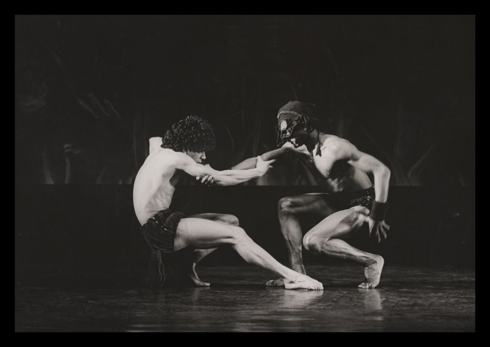 Black and white photograph of performers on stage in Rites de Passage-A Caribbean Rhapsody
