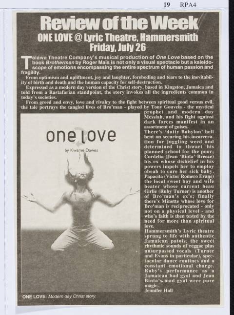 Review of the Week: an article from The Voice on One Love at Lyric Theatre, Hammersmith 2