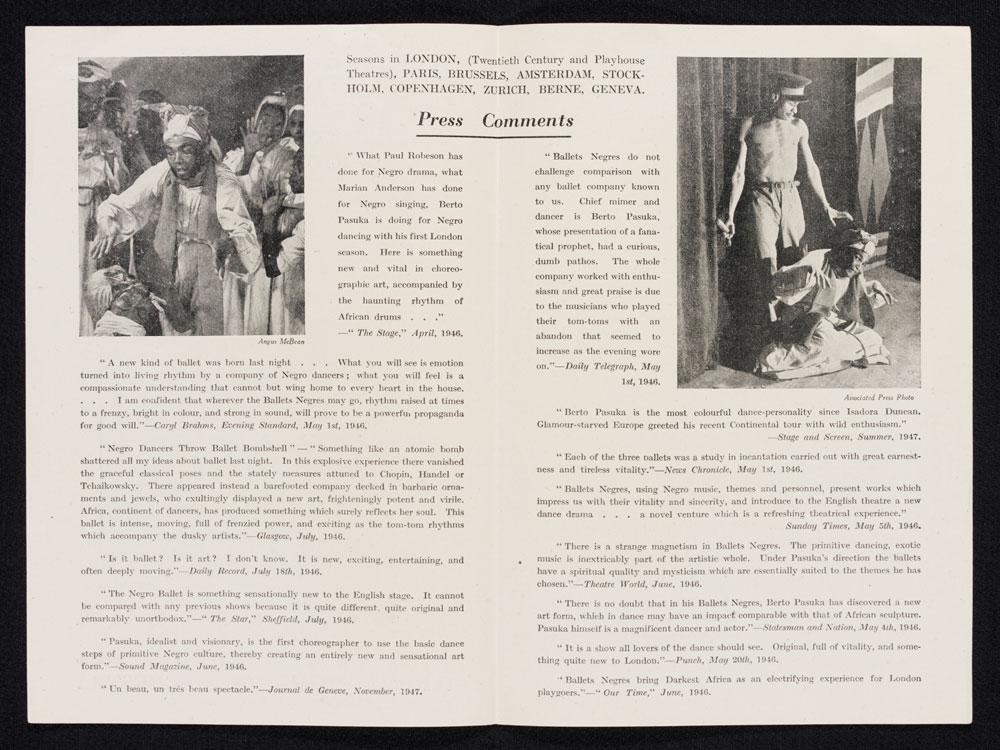 Programme: Les Ballets Negres Society. Photography: Angus McBean, AP, Keystone