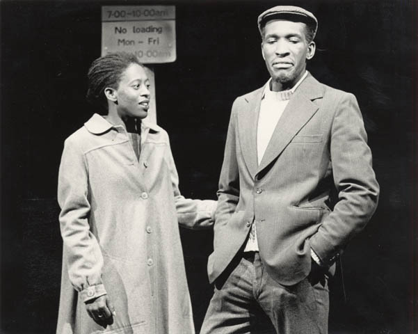 Production photograph of “Money To Live”: L-R: Judith Jacob, Bob Phillips.