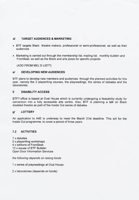 Black Theatre Forum Summary of Activities (1997/1998).