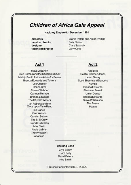 Programme of event held at the Hackney Empire (8th Dec 1991).