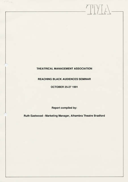 Report by the Theatrical Management Association on “Reaching Black Audiences” a seminar held on 25th – 27th Oct 1991.