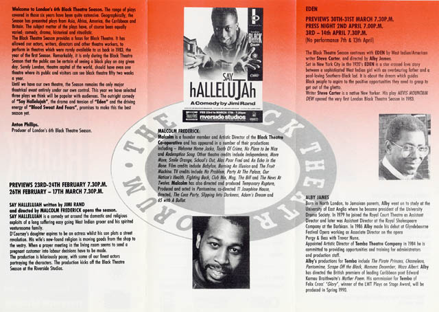 Flyer publicising the Black Theatre Season at the Riverside Studios, 23rd Feb – 12th May 1990.