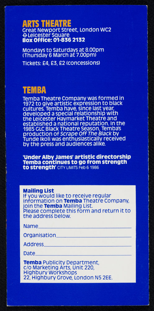 Temba Theatre company/Little Theatre Movement of Jamaica/Black Theatre Forum.